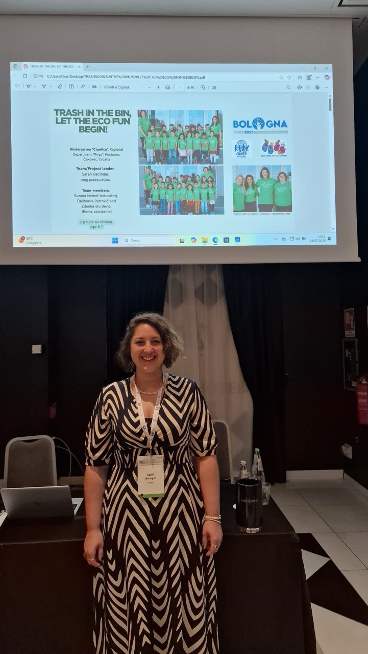 Dodatni razlog za ponos je i dobitnica ESD nagrade (Obrazovanje za održivi razvoj), jednog od prioriteta OMEP-a. Sarah Bacinger, članica i volonterka OMEP Hrvatska, osvojila je nagradu za projekt "Smeće u koš baci i uživaj u EKO bajci" ("Trash in the bin, let the ECO fun begin!"), proveden u Dječjem vrtiću Cipelica, područnom objektu Pirgo, Kuršanec.
